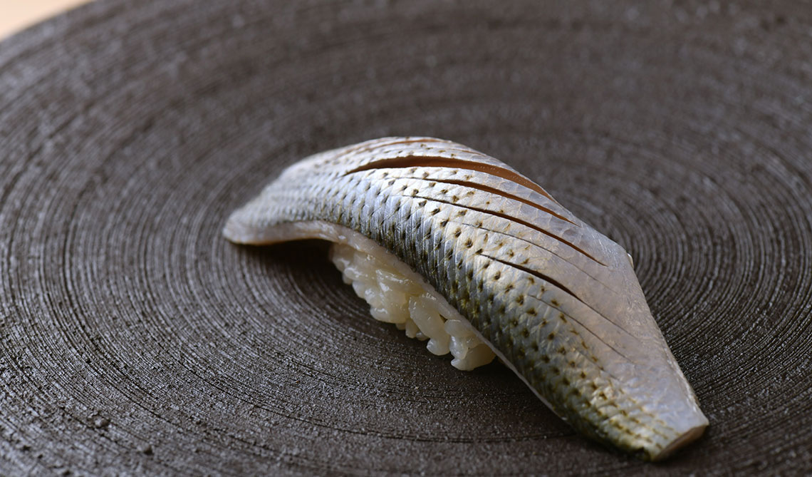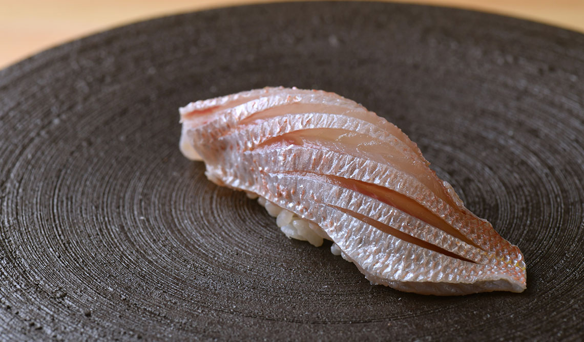 「夏はマコガレイ、冬はヒラメといったように旬の魚にこだわった店にしたかった」と語る小野田さん。ネタは名古屋市中央卸売市場と柳橋中央市場に足を運び、東海三県のものを中心に納得したものだけを仕入れる。「“早起きは三文の徳”と言いますが、毎日2つの市場に足を運ぶことで魚のことをより深く知ることができますし、店の人と仲良くなることでいい魚を教えてくれたり、妥協せず自分が納得のいくものを仕入れることができたりと、いいことずくめなんです」。魚介同様に、米は「粒が大きく、粘りが少ない」岐阜県産のハツシモの古米、合わせ酢には厳選した米酢と赤酢を独自でブレンドしたものを用い、シャリにもこだわる。