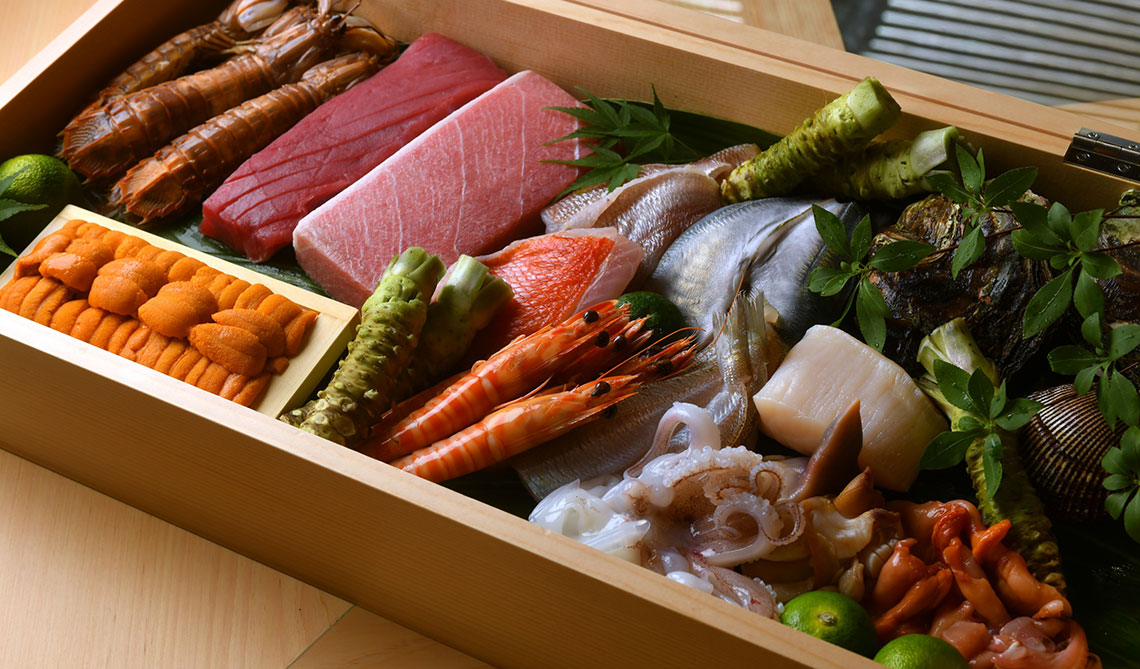 オーダーは、おまかせにぎりの数により値段が異なる2種類のコースのみ。例えば三河産のあおやぎなら、海水と同じ濃度の塩水でゆっくり茹でていくことでコリコリの食感にするなど、その日仕入れた魚介の持ち味を最大限に引き出す調理法で仕込んだネタを、味の濃淡に気を配り提供する。選りすぐりのマグロや淡路の釣り鯵など、一つひとつのネタが大きめなのは「しっかり鮨を食べたと満足して帰ってもらいたい」という小野田さんの思いから。また、先に食べたいネタがあればコースの流れに関係なくその要望に応えるほか、内容も「握りを少なく、あとはお刺身で」などのようにカスタマイズできる築地スタイルで臨機応変に対応。ここには「もともと江戸前寿司は、せっかちな江戸っ子が短時間で空腹を満たすことができるよう、屋台で提供していたもの。今では、店主体で畏まって食べる敷居の高さを感じることが多いと思いますが、うちでは気兼ねなく存分に鮨を楽しんでもらいたい」との思いも込められている。