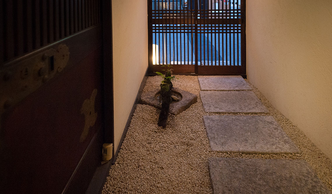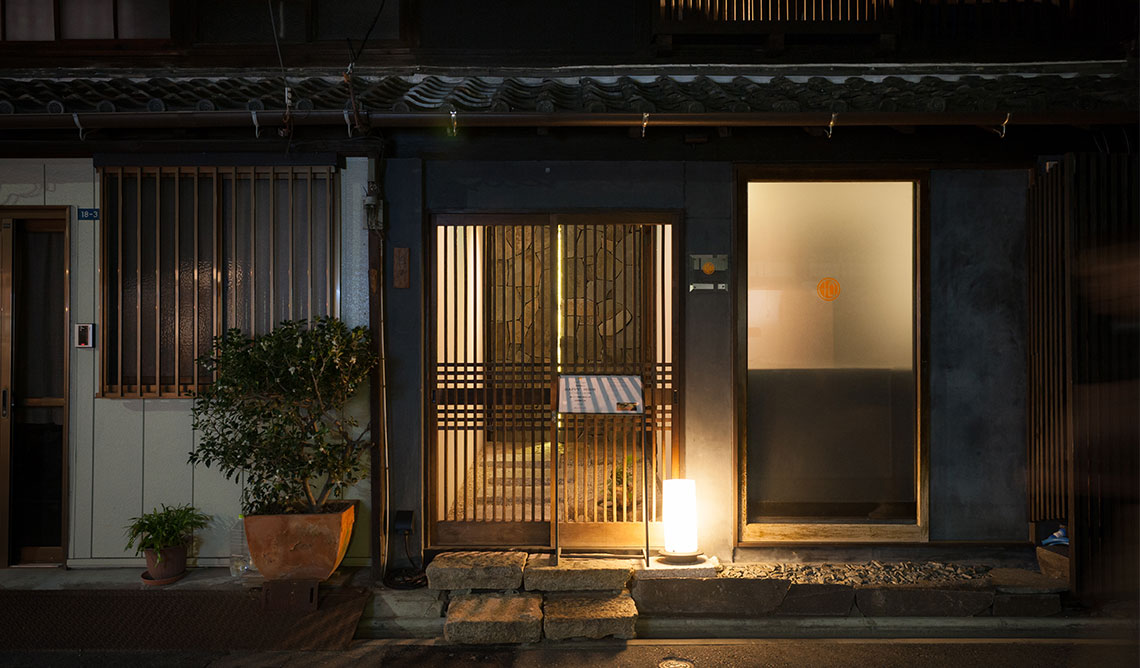 歴史を重ねてきた古民家長屋をリノベーションしたバー『エルヴァージュ』。店名はワイン用語で、醸造後に樽やタンクに入れ、数年熟成させる作業を意味する。その名からワインバーを思い浮かべるかもしれないが、予想に反して同店は熟成古酒に特化した日本酒バーなのだという。