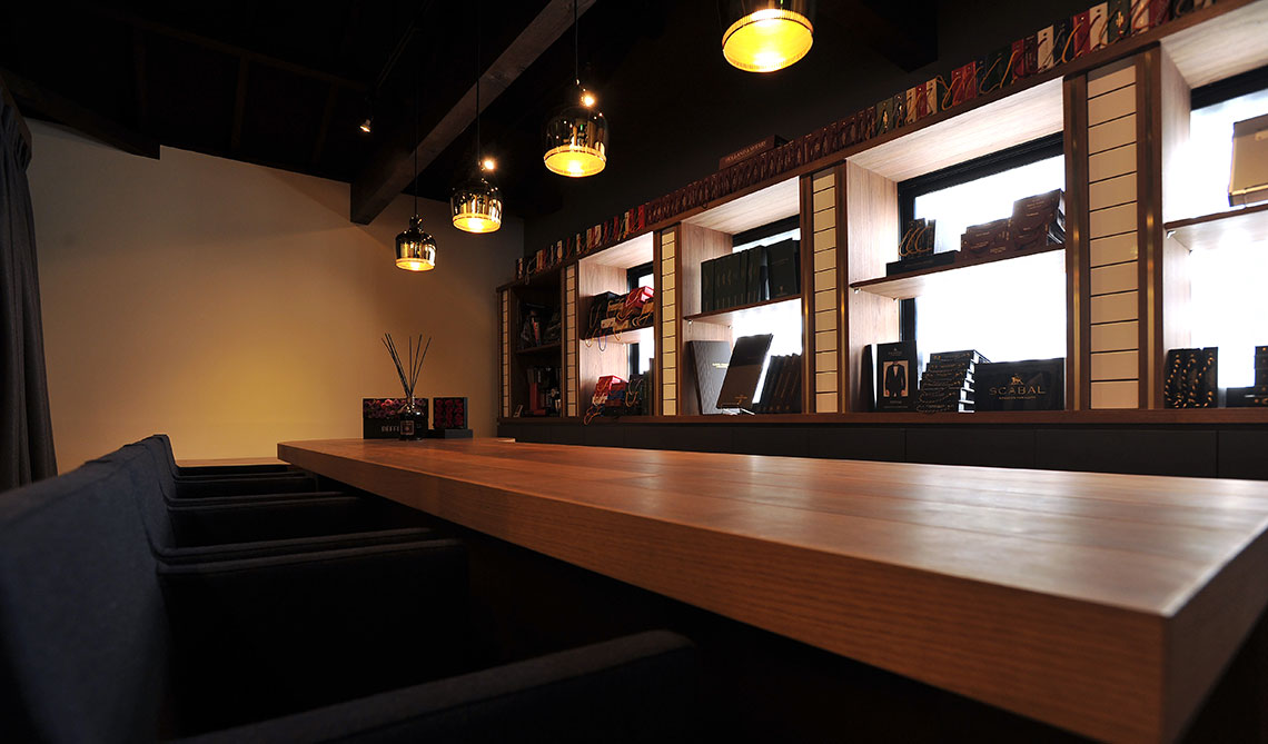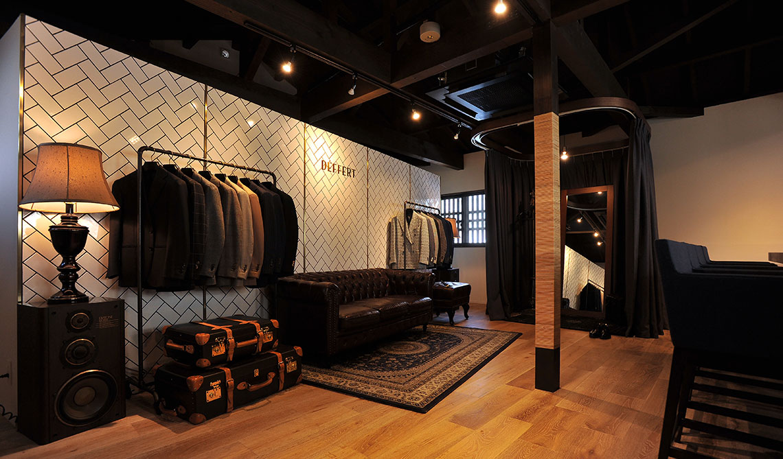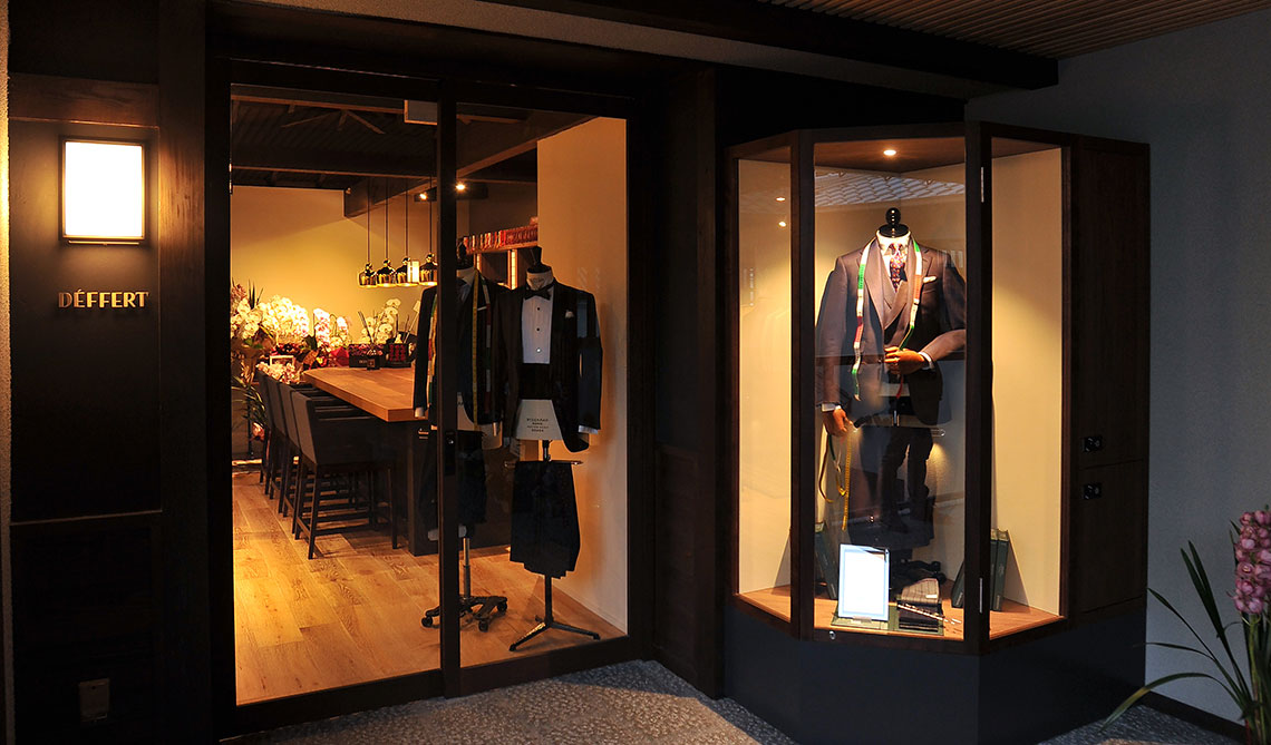 「この場所を見た瞬間、自分が目指す世界観を表現できる場所だと思いました」と話す店主の田中恵介さん。以前も八事でオーダースーツ専門店を行っていたが「出張訪問より来店されるお客様が増え、お客様の満足度向上のために移転することにしました」。そうにこやかに話す田中さんは、もともとビジネスの最前線で活躍する商社マンだった。現在の仕事における原点や哲学も当時の経験にあるという。