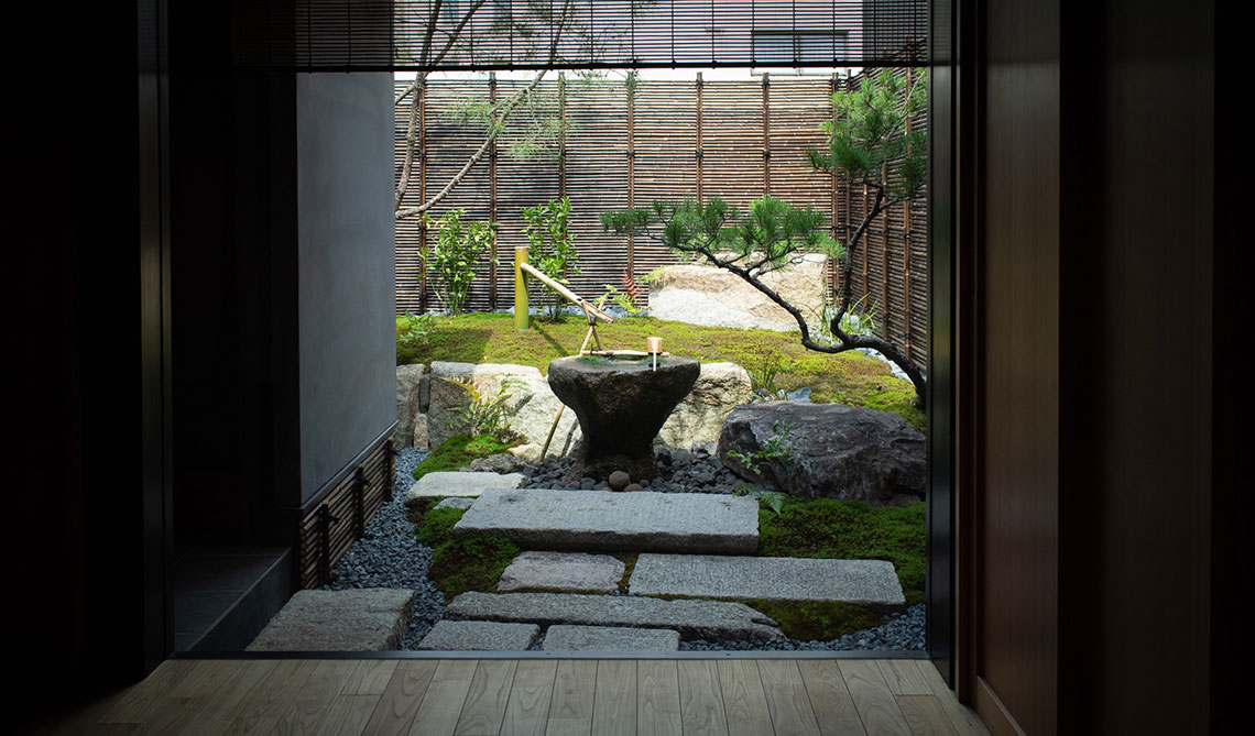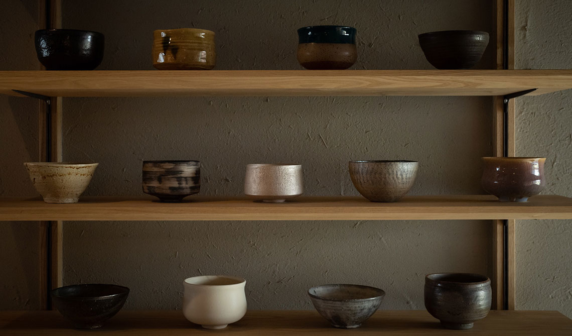 茶器は、常滑焼の伝統的な技法の一つで作られた藻掛け急須など数セットを用意。茶器を納める折敷は、江戸中期より受け継がれる伝統的な三宝作りの技法を取り入れた『岩田三宝』の特注品で揃えている。これらプロデュースの根底には、伝統を古いまま守るのではなく、現代的な解釈を加えて次の百年まで繋げていきたいという思いがある。